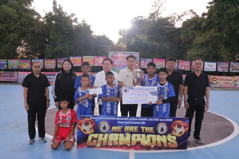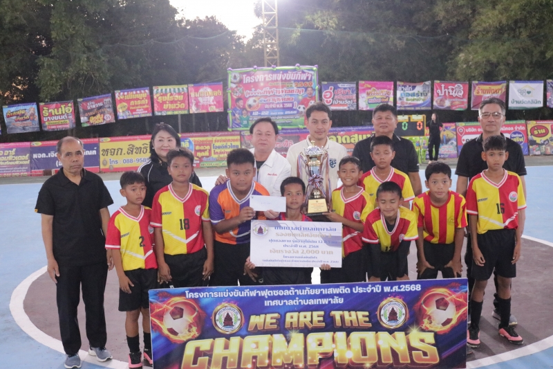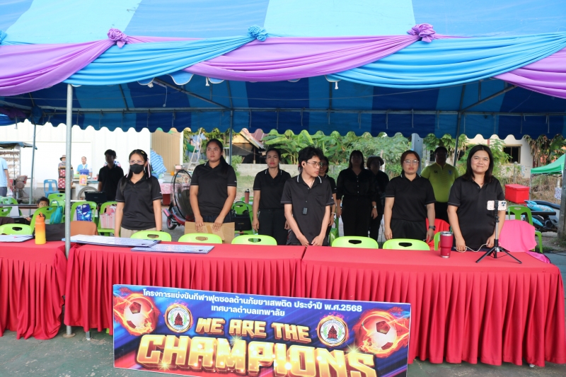 ประชาชนในเขตเทศบาลและผู้มาร่วมงานทุกท่าน ได้เข้าร่วมกิจกรรมการแข่งขันกีฬาฟุตซอล ต้านยาเสพติด ประจำปี 2568