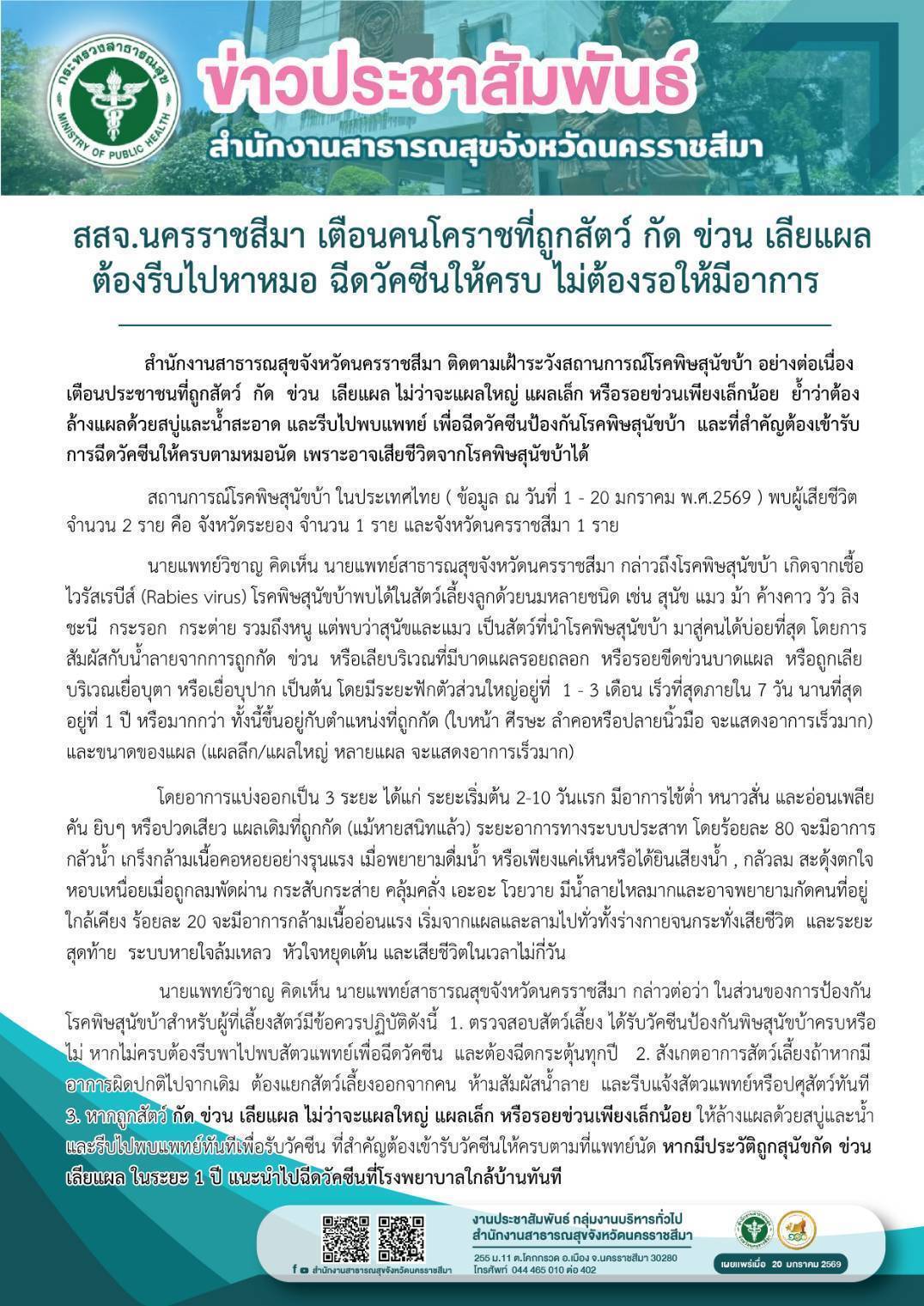 หากถูกสัตว์ กัด ข่วน เลียแผล ให้ไปฉีดวัคซีนทันที
