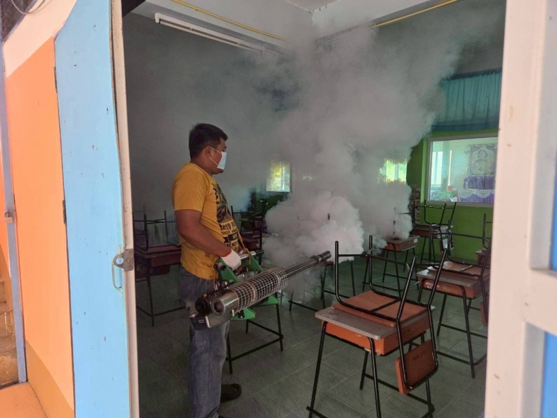 วันที่ 8 พฤศจิกายน 2568 เทศบาลตำบลเทพาลัย รณรงค์ควบคุมป้องกันโรคไข้เลือดออก พ่นหมอกควันหลังเปิดภาคเรียน ณ โรงเรียนชุมชนบ้านวัด ศูนย์พัฒนาเด็กเล็กเทศบาลตำบลเทพาลัย ศาสนศึกษาวัดบ้านวัด วัดถนนนางคลาน