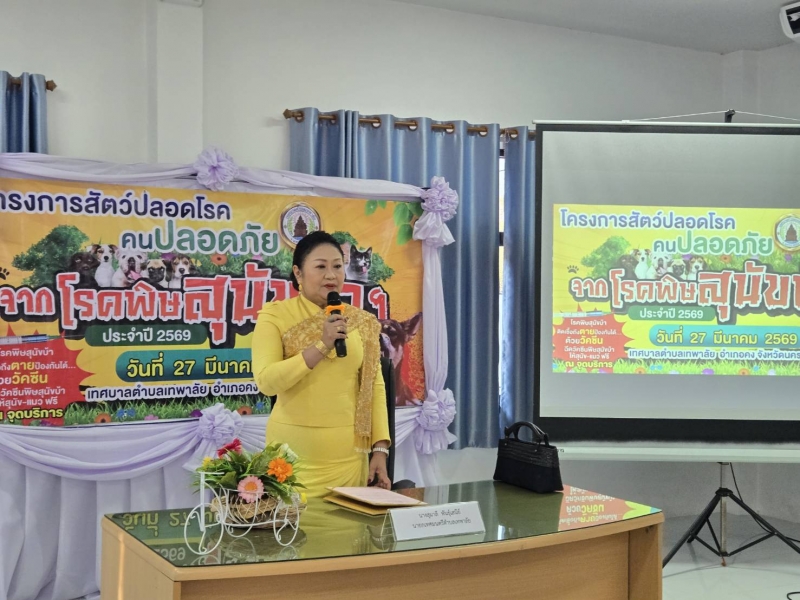 วันที่ 27 มีนาคม 2569 เทศบาลตำบลเทพาลัย โดยนางสุมาลี พันธุ์เสนีย์ นายกเทศมนตรีตำบลเทพาลัย เป็นประธานเปิดโครงการสัตว์ปลอดโรค คนปลอดภัยจากโรคพิษสุนัขบ้าฯ ประจำปี 2569 โดยมีกิจกรรมอบรมให้ความรู้เกี่ยวกับการควบคุมป้องกันโรคพิษสุนัขบ้าให้กับ อาสาสมัครปศุสัตว์ ผู้แทนหมู่บ้าน ผู้แทนชุมชน ผู้แทนอสม. ผู้แทนโรงเรียน สมาชิกสภาฯ เจ้าหน้าที่ จิตอาสา และผู้มีส่วนเกี่ยวข้อง ได้รับความอนุเคราะห์วิทยากรจากทาง รพ.สต.บ้านวัด และสำนักงานปศุสัตว์อำเภอคง