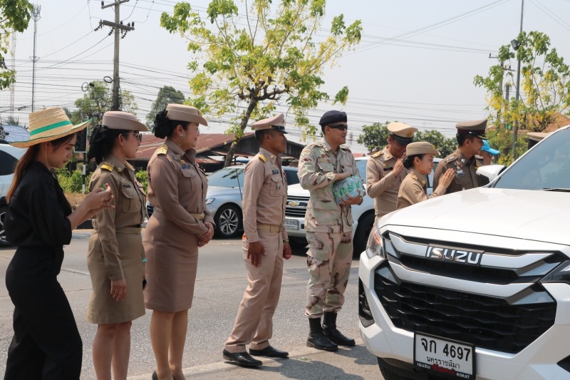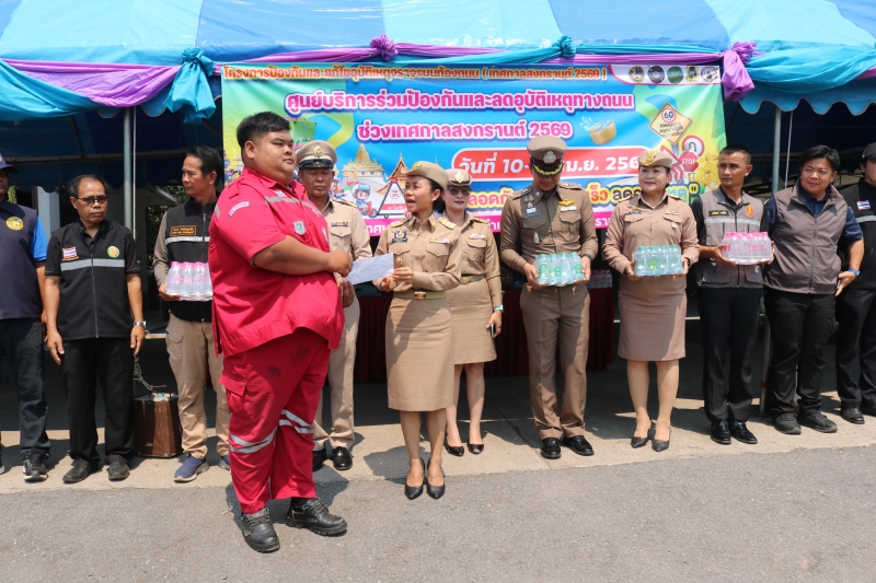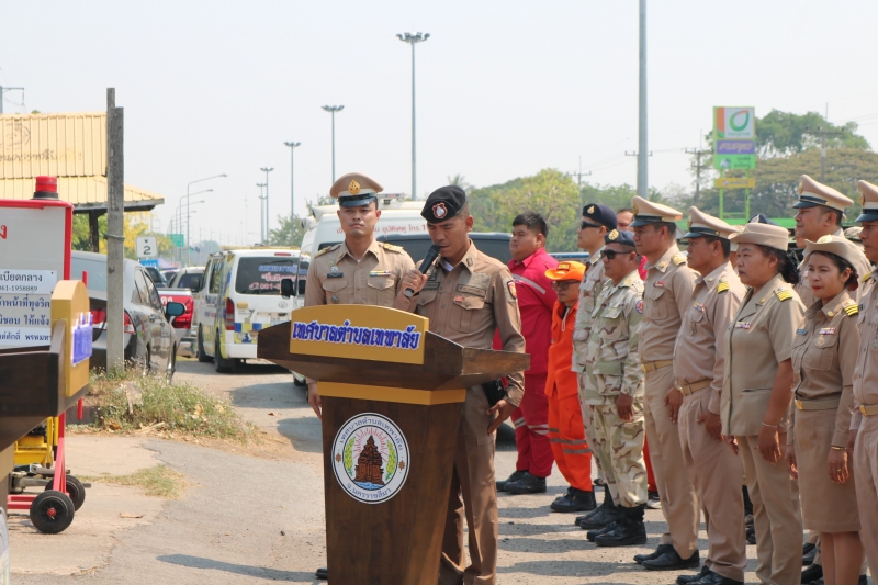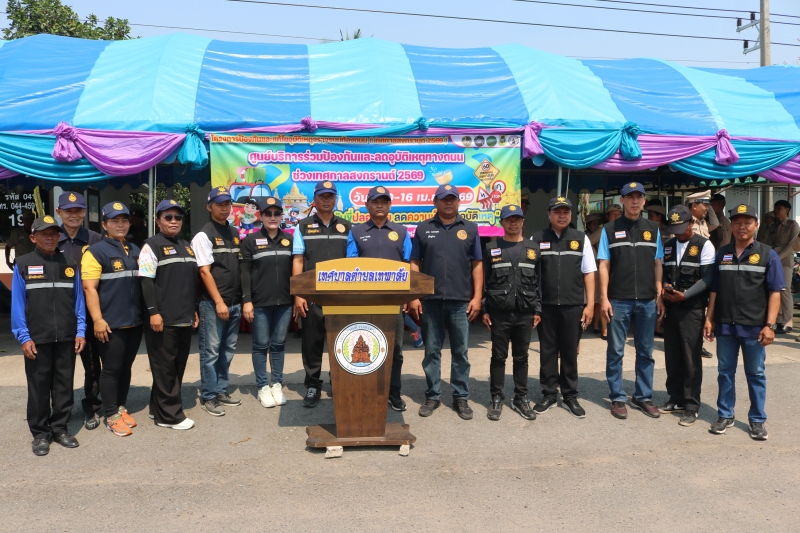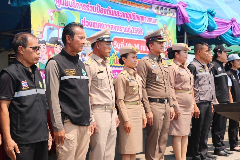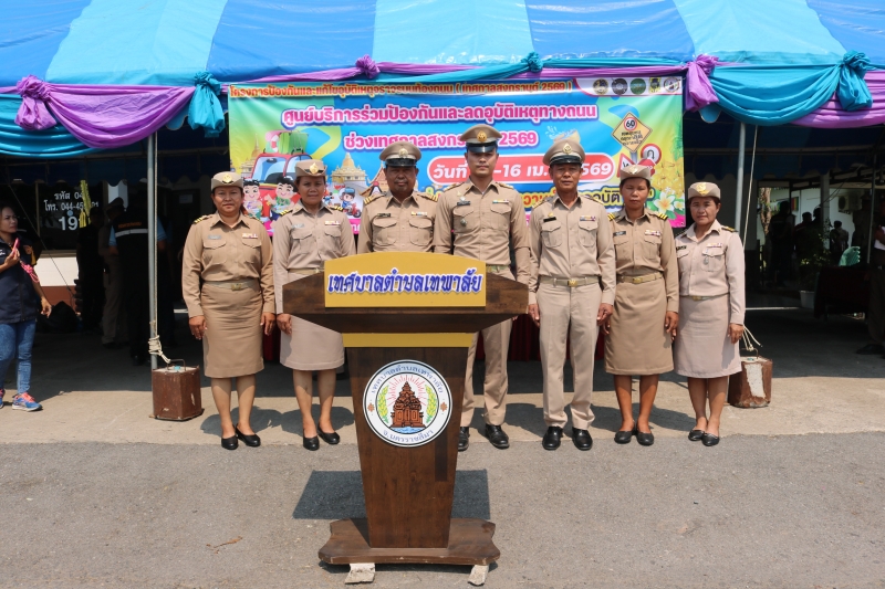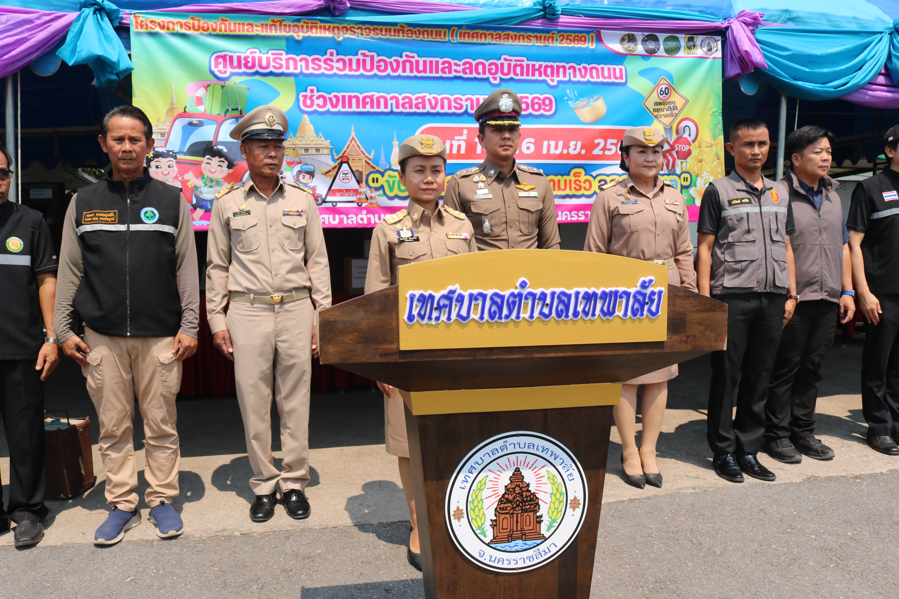 นางสาวนิชาพิชญ์ รักษาภักดี นายอำเภอคง นางสุมาลี พันธ์ุเสนีย์ นายกเทศมตรีตำบลเทพาลัย หัวหน้าส่วนราชการอำเภอคง กำนัน ผู้ใหญ่บ้าน ผู้ช่วยผู้ใหญ่บ้าน อสม.ตำบลเทพลัย กู้ภัยฮุก 31 จุดบ้านวัด รื่นจิตอาสา เปิดศูนย์บริการร่วมป้องกันและลดอุบัติเหตุทางถนน ช่วงเทศกาลสงกรานต์ 2569 ณ จุดสกัดบ้านวัด
